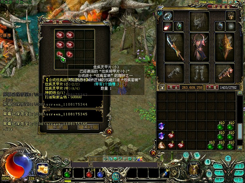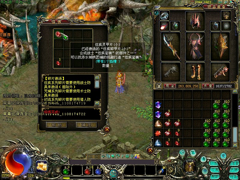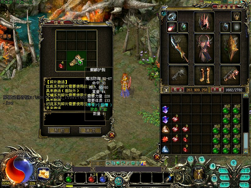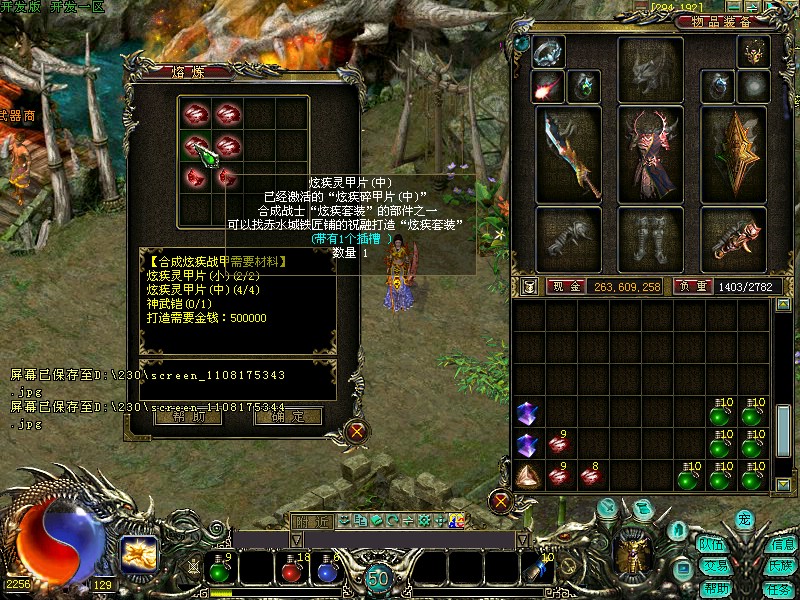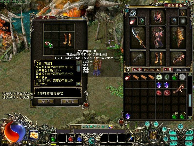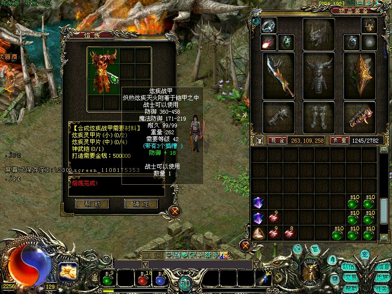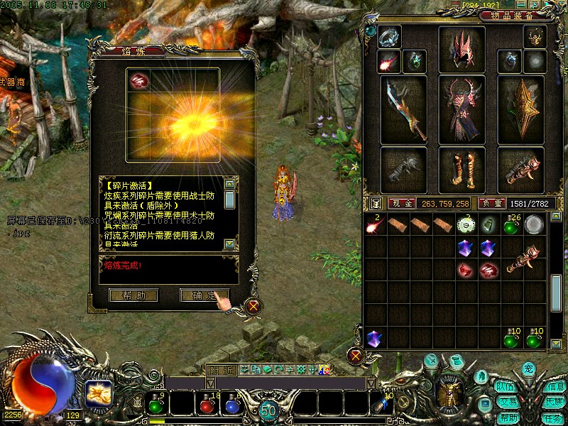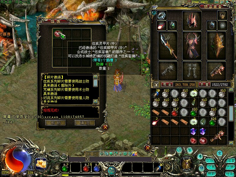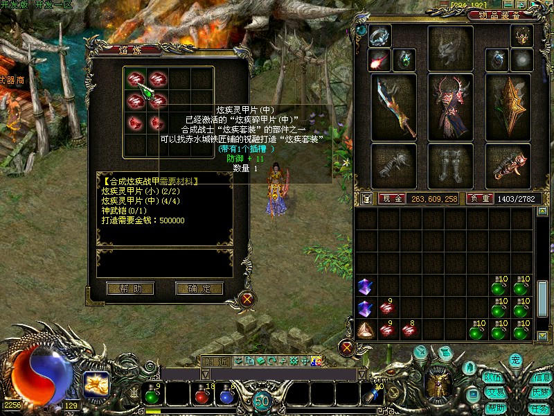 2 、还缺一件合成用的装备,套装合成是 100% 成功的,把最好的装备拿出来吧,确定,套装铠甲出现,还继承了灵片的很多属性;