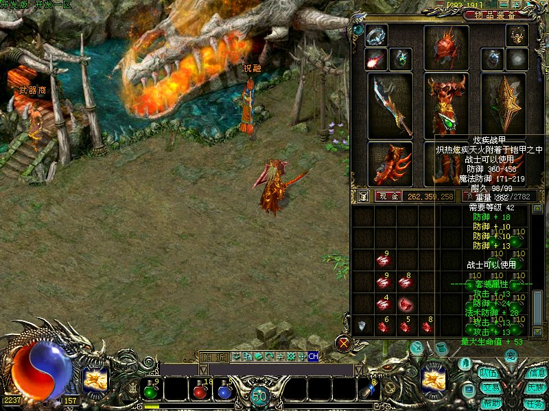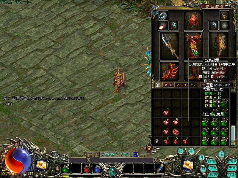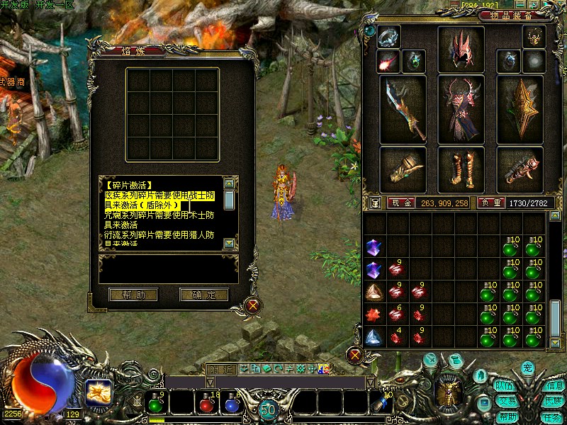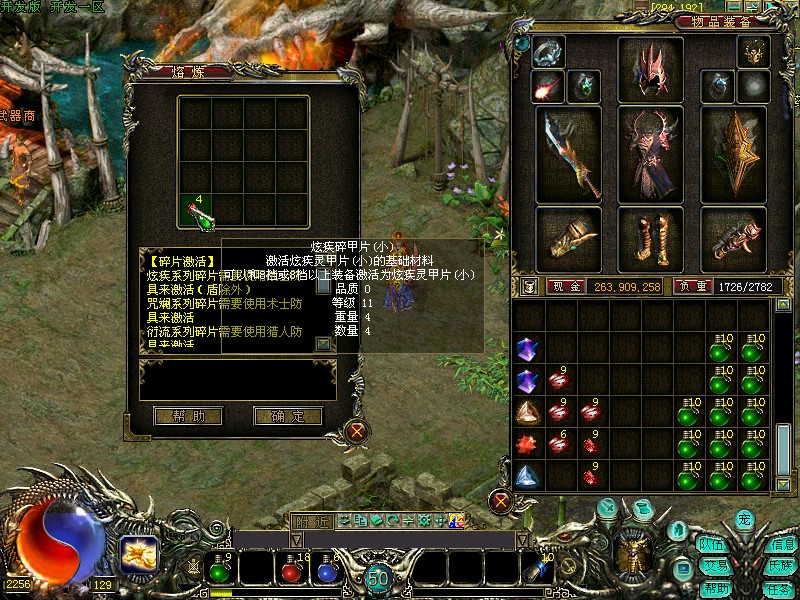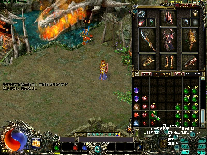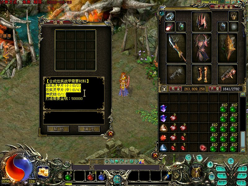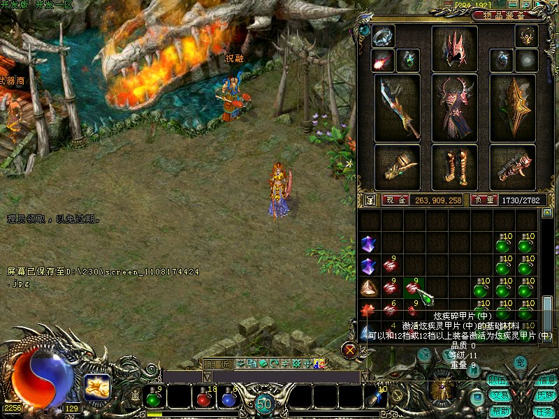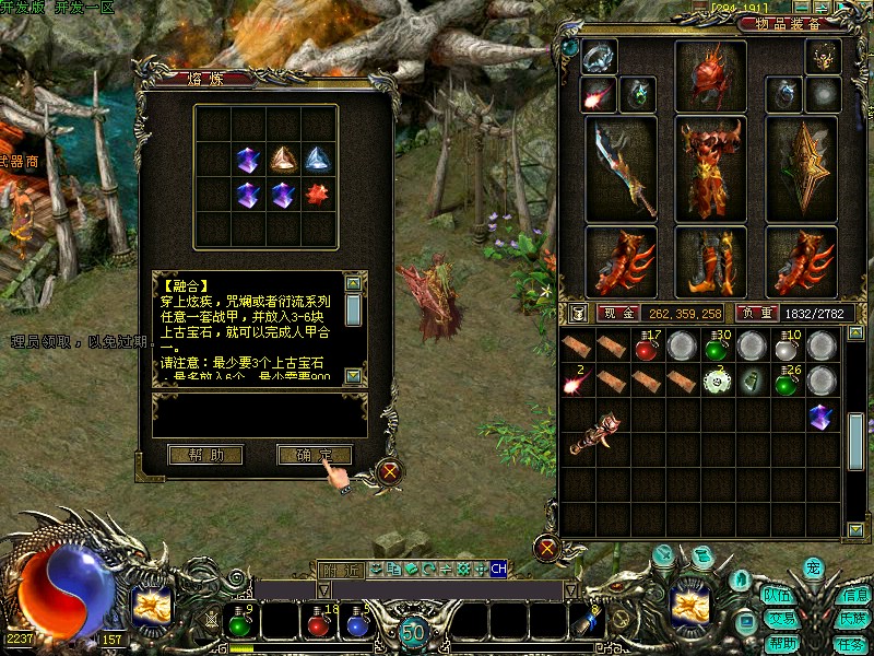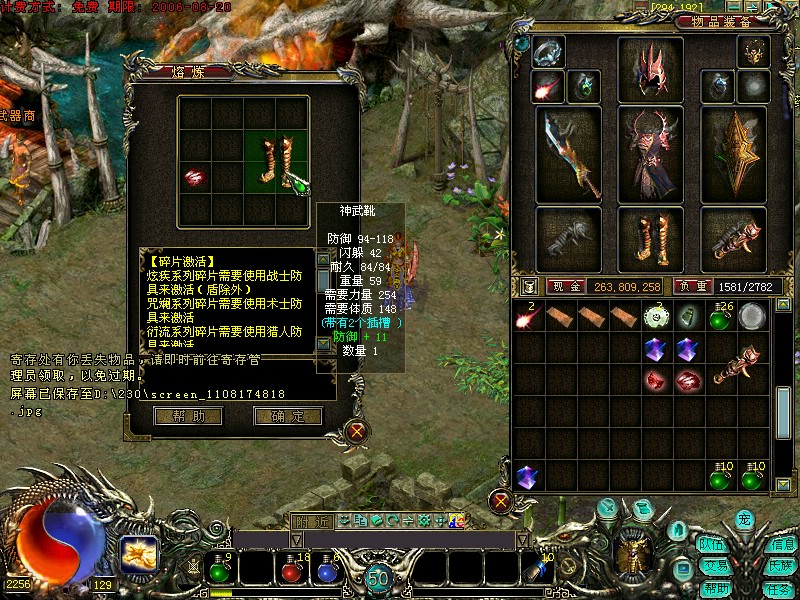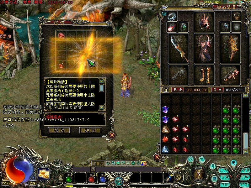 2 、还缺一件合成用的装备,套装合成是 100% 成功的,把最好的装备拿出来吧,确定,套装铠甲出现,还继承了灵片的很多属性;