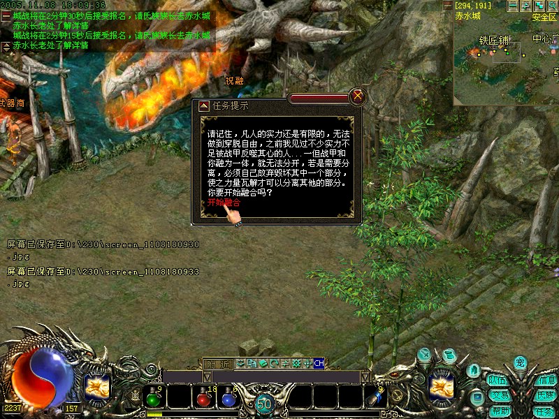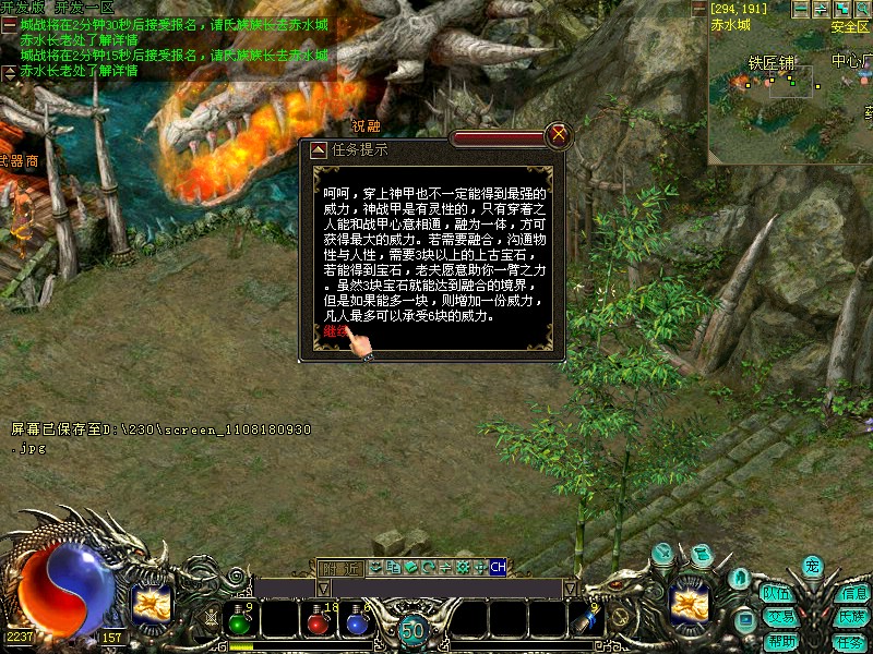 攒够足够的套装碎甲片后,便可以来到赤水的 NPC ――祝融处进行套装的合成。